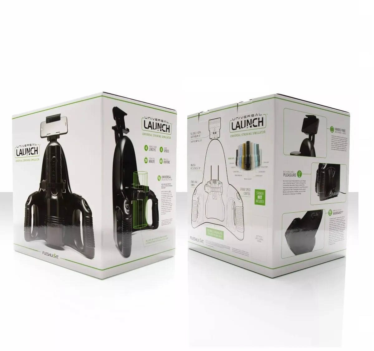 Met de Fleshlight Universal Launch Stroking Simulator tover je in een handomdraai jouw favoriete Fleshlight of Fleshjack masturbator om in een volledig automatische masturbator! Dit Fleshlight accessoire is compatibel met het grootste deel van de collectie masturbators én masturbators met harde behuizing van andere merken! Het apparaat beschikt voer twee handvaten zodat je optimale grip krijgt en in gewenste hoe kunt positioneren. Plaats je masturbator in de cirkelvormige opening waarna je deze eenvoudig kunt vergrendelen door de riem vast te klemmen. Daarna kan je het apparaat eenvoudig inschakelen om vervolgens te kunnen genieten van vele functies. Schakel tussen 4 strokes lengtes en snelheden tot wel 250 slagen per minuut! Om de beleving nóg intiemer te maken kan je jouw smartphone plaatsen aan de bovenzijde van de Launch Stroking Simulator om vervolgens favoriete video’s te kijken terwijl je penis heerlijk wordt verwend. Het apparaat is voorzien van een ingebouwde accu die tot wel 60 minuten mee gaat.