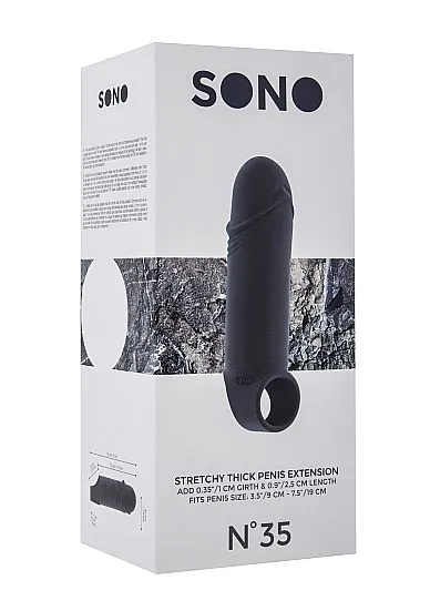 Met de Sono nummer 35 penissleeve verleng je je penis met 2.5 cm en hij wordt 1 cm breder. De sleeve is voorzien van balriem waardoor hij goed op plek blijft zitten. De Sleeve is gemaakt van TPE.