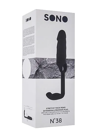 Verleng je penis en geniet tegelijk van een heerlijke buttplug. De Sono nummer 38 is een penissleeve met een buttplug er aanvast. Verleng je penis met 2.5 cm en maak hem 1 cm breder, wie wil dat nou niet? Door de balriem blijft hij goed op zijn plek zitten.